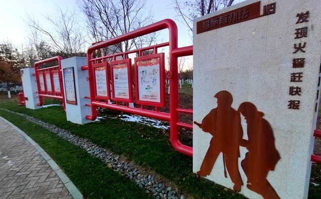 公园内有不同类型的消防卡通人物雕塑,到处可见消防安全标语,从道路到垃圾桶,随处都能看到消防元素。公园里还设置有消防知识环路、消防宣传中心文化廊、消防科普宣传带、消防知识宣传带、消防法制宣传带、消防主题休闲角以及小小消防员训练营等7个区块配套设施,让市民在游园过程中零距离体验消防文化。通过实物、图文相结合的方式,展示了消防器材使用、消防相关法律法规,以及生活中的消防小知识等,市民还可通过翻牌游戏的方式学习到消防小知识。