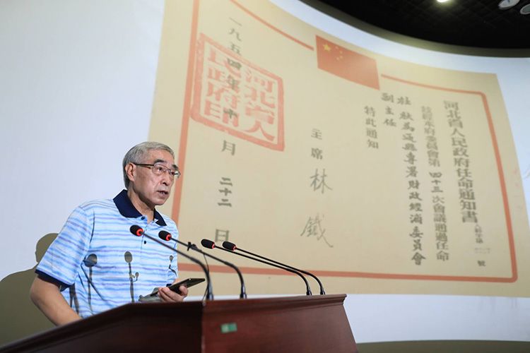 首都博物馆馆长韩战明向大运河老照片捐赠者刘世昭颁发捐赠证书。