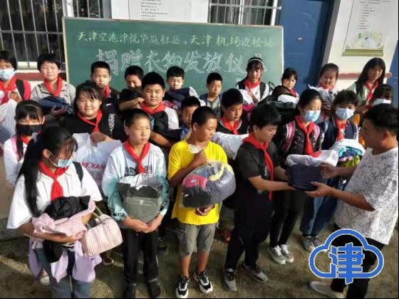9月14日,河北省青龙满族自治县山区的樊家店中心小学组织了一场隆重的衣物发放仪式。由天津机场边检站与共建社区集中捐赠的数百件青少年衣物、文体用品发放给这里的广大学生,转达天津边检国门卫士对山区小学的关心问候。