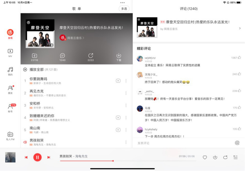 10 月 4 日消息据网易云音乐宣布,摩登天空回归云村。网易云音乐官方还分享了一份摩登天空歌手的歌单。