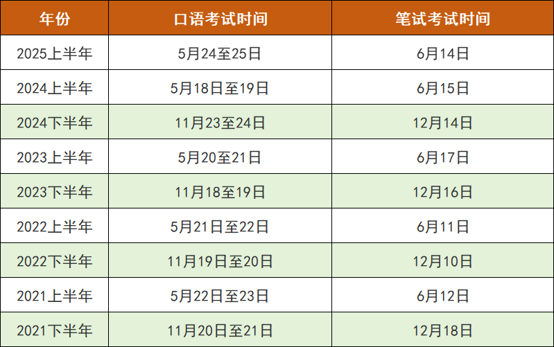 英语四六级下半年考试一般在12月进行,考试时间相对比较固定,我们可以参考往年考试时间,具体如下: