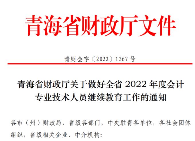 青海省财政厅关于做好全省2022年度会计专业技术人员继续教育工作的通知