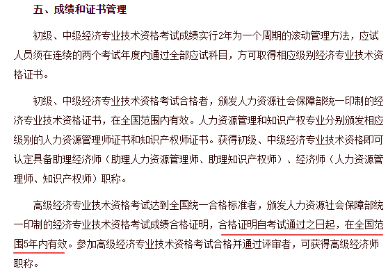 根据经济师考试政策可知,高级经济师考试达到全国统一合格标准者,颁发人力资源社会保障部统一印制的经济专业技术资格考试成绩合格证明,合格证明自考试通过之日起,在全国范围5年内有效。