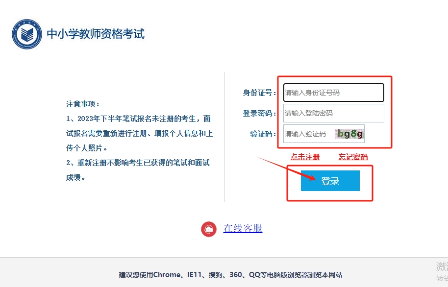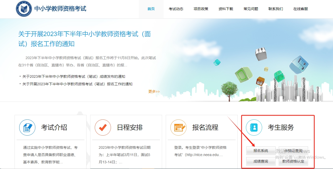 考生在规定时间内登录教育部中小学教师资格考试网ntce.neea.edu.cn