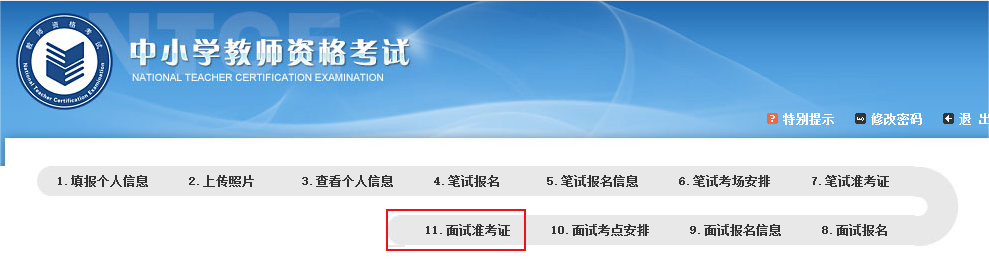 登录进来后,点击“11.面试准考证”,然后根据提示下载pdf准考证文件。下载后,仔细核对个人信息,并直接打印成准考证。