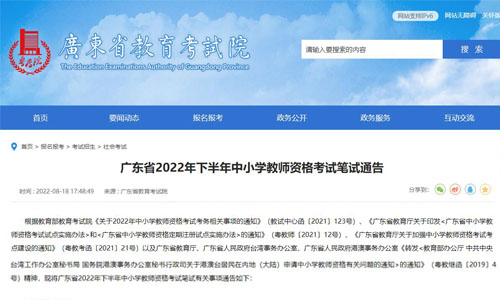 广东省教育考试院《广东省2022年下半年中小学教师资格考试笔试通告》