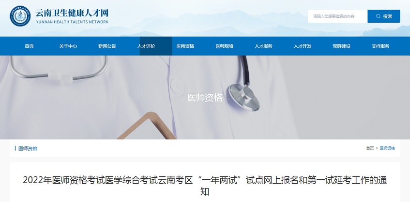 近日,云南省卫生健康人才交流中心发布了《2022年医师资格考试医学综合考试云南考区“一年两试”试点网上报名和第一试延考工作的通知》,从通知中了解到,2022年云南临床执业医师综合考试“一年两试”网上报名时间为10月8日12时起至10月14日24时,具体内容由本站编辑整理,详见下文。