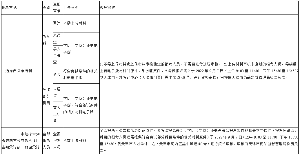 备注:(1)需要上传材料的报考人员于2022年8月29日0:00至9月4日24:00登录全国专业技术人员资格考试报名服务平台上传相关资料电子版,审核部门将于2022年8月30日9:00开始对上传材料进行审核。