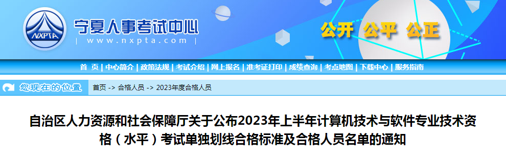 关于公布2023年上半年计算机技术与软件专业技术资格(水平)考试单独划线合格标准及合格人员名单的通知