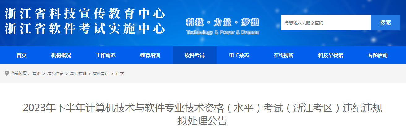 2023年下半年计算机技术与软件专业技术资格(水平)考试(浙江考区)违纪违规拟处理公告