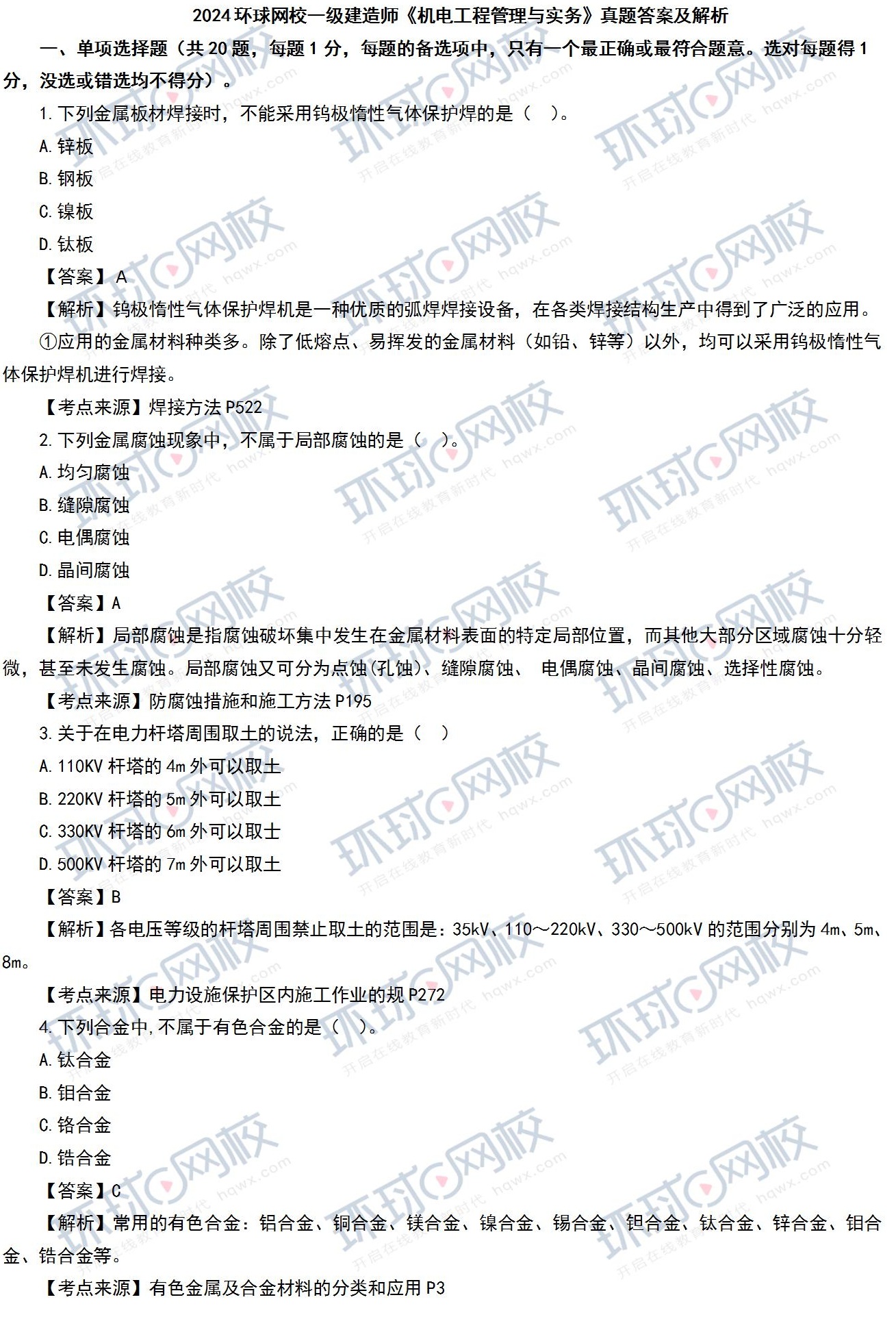 由于篇幅限制,我们在此仅展示部分真题及答案解析。考生们可以点击文章末尾的一级建造师真题版块链接进行下载,我们会持续收集整理更多的真题,并陆续更新更完整、更详细的真题及答案解析,以助力大家进行准确的分数评估。