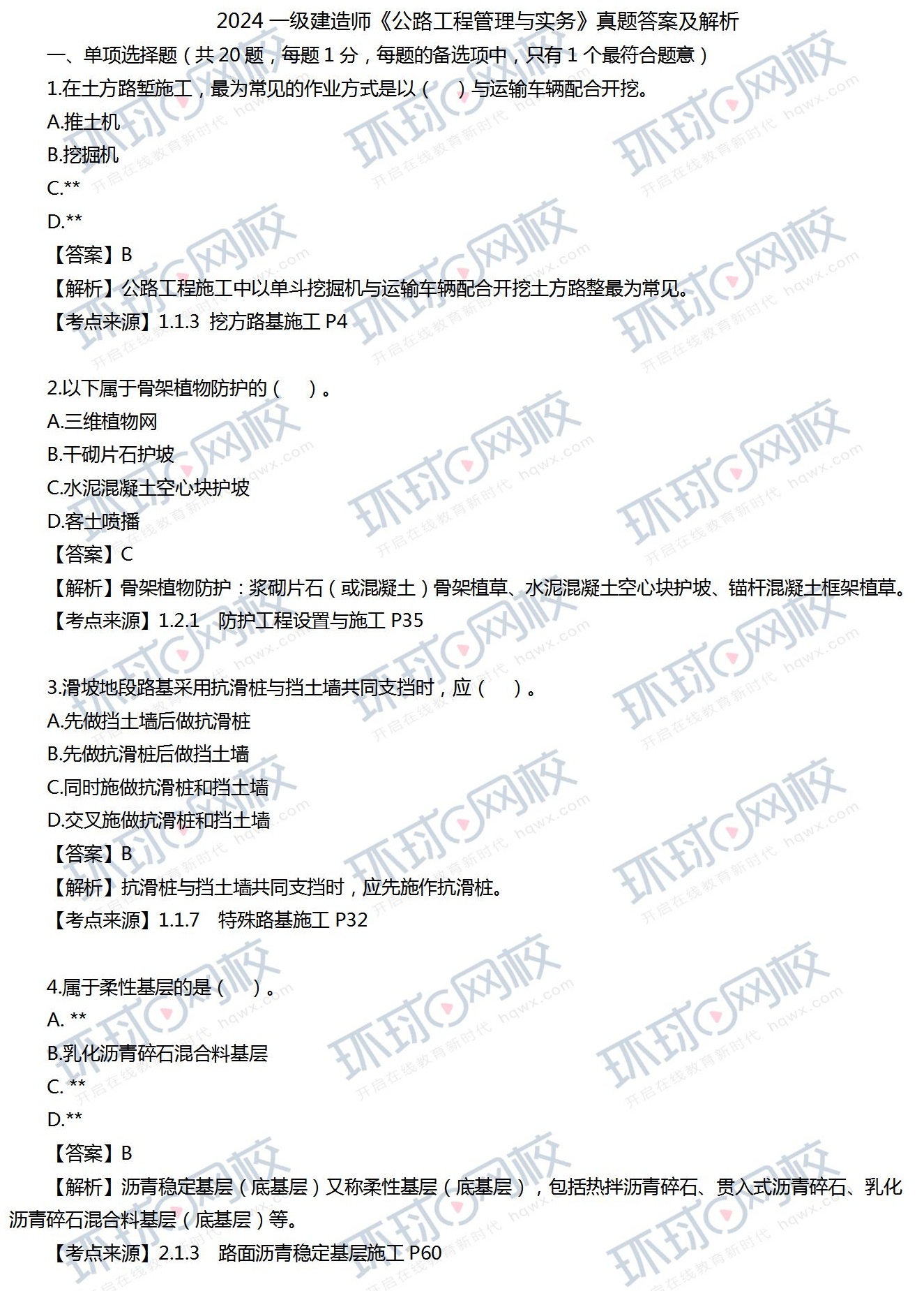 2024年公路真题答案