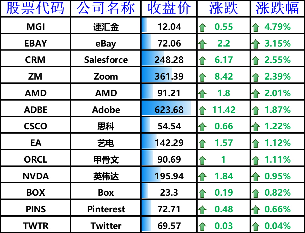 ▲ 上涨的其他国外科技股