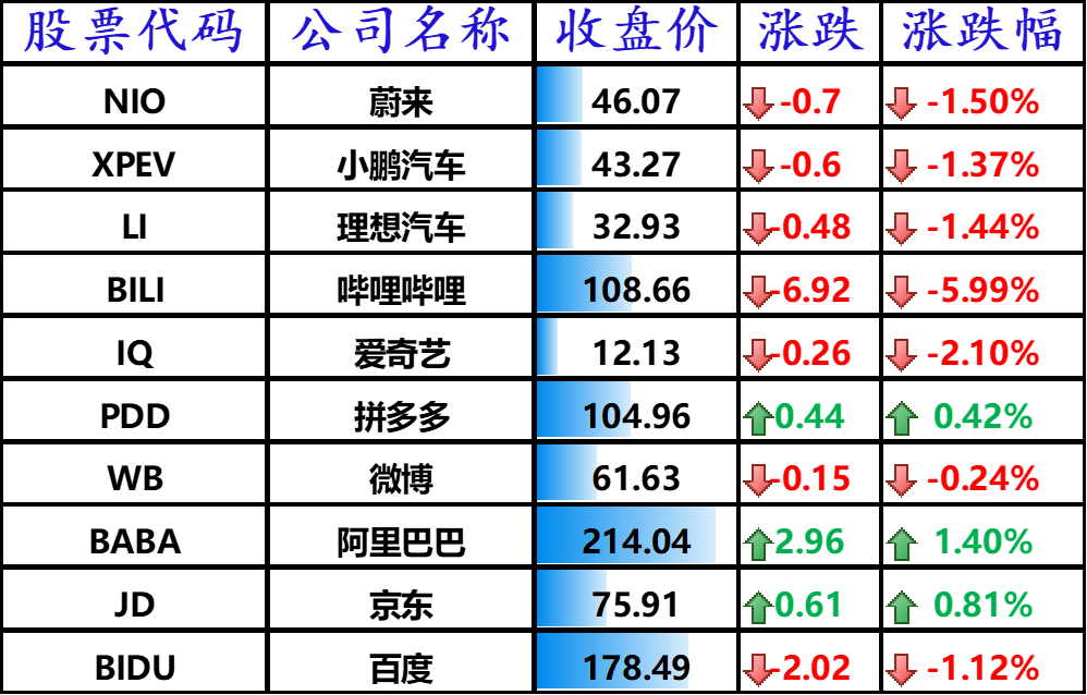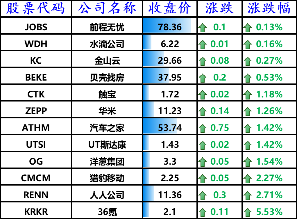 ▲ 上涨的其他中概股