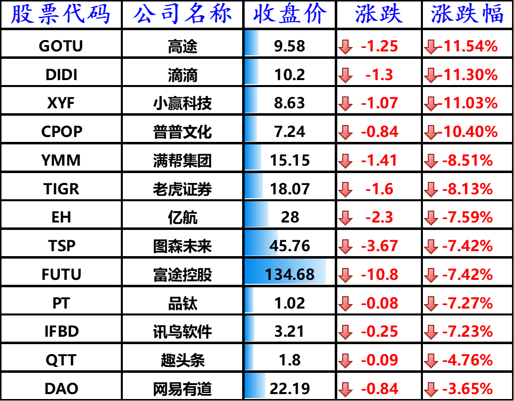 ▲ 下跌的其他中概股