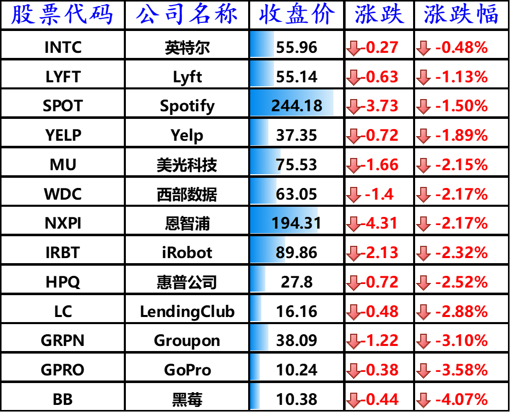 ▲ 下跌的其他国外科技股