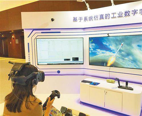 数字技术也在赋能制造产业。近年来,数字孪生应用已从航空航天领域向工业各领域全面拓展。在展区一侧,借助基于系统仿真的工业数字孪生技术,戴上VR眼镜,就可身临其境体验空间站发射入轨的过程。