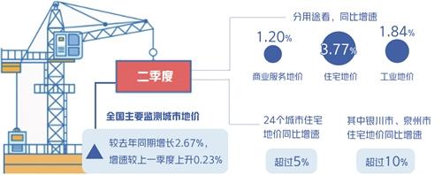 中国国土勘测规划院日前发布的全国主要城市地价监测报告显示,二季度全国总体地价增速微涨。全国主要监测城市地价较去年同期增长2.67%,增速较上一季度上升0.23%。