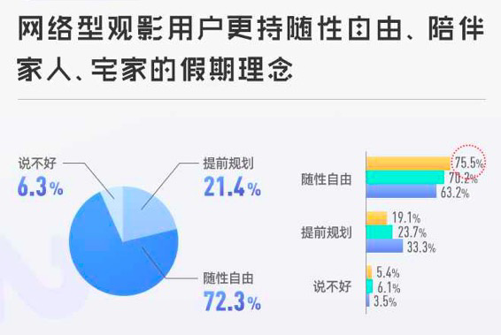 《研究》指出,网络用户对网络电影内容类型、口碑质量等有了明确的要求偏好;用户的观影行为日常化,但对春节档、国庆档等头部档期有了初步认知。此外,约有 6 成的网络用户愿意为网络单片付费。