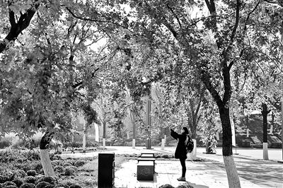 游客在世园公园内赏叶 摄影/本报记者 魏彤
