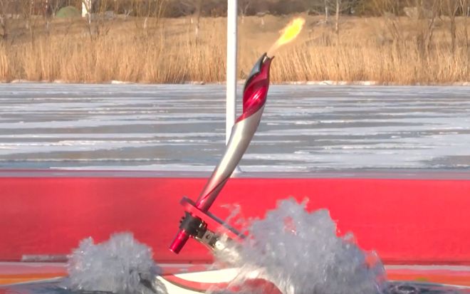 2月2日下午,奥运史上首次由水陆两栖机器人与水下变结构机器人在北京冬奥公园水下完成火炬传递。图/IC photo