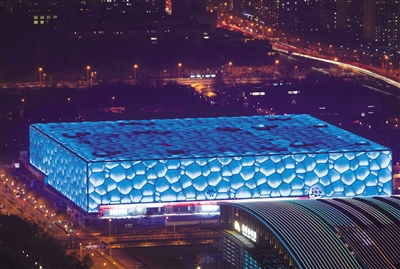 1月18日,国家游泳中心。在2022年冬奥会和冬残奥会期间,“水立方”变身“冰立方”,举行冰壶和轮椅冰壶比赛。新京报记者 陶冉 摄