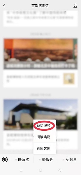 ◆点击公众号菜单“享·服务”—“预约服务”,进入预约页面。