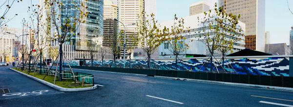 这个绿色“艺术长廊”紧邻北京国贸商城西侧、中海广场南侧,由停车场砖砌围墙经过艺术改造变成了一幅彰显中国精神的万里长卷,使城市精神通过艺术互动融入城市环境与市民生活。
