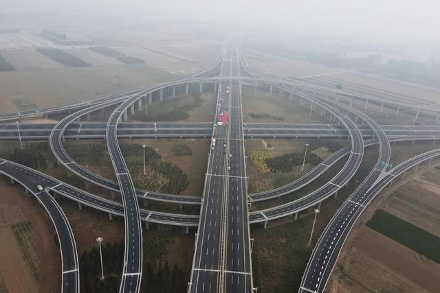 2021年5月14日,航拍京雄高速与荣乌高速立交桥。新京报记者 王贵彬 摄