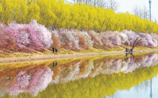 清明假期,在朝阳区坝河两岸,翠柳拂堤,岸边绽放的花朵如彩云般铺陈开来,映在碧波中,描绘出一幅春的画卷。市民们踏青赏花,享受惬意的假日时光。本报记者方非摄