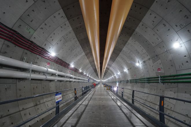 目前“京华号”盾构机位于地下58米处,已经跨过隧道最低点。在穿越城市副中心站时,隧道标高将有略微提升。尽管距离地面仍有着接近20层楼高的距离,但在地面以下,这两项大工程几乎可以说是“贴身擦过”。