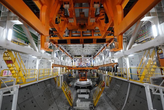 站在盾构机内部,除了前方发动机传来的轰鸣声外,基本感觉不到震动和移动。