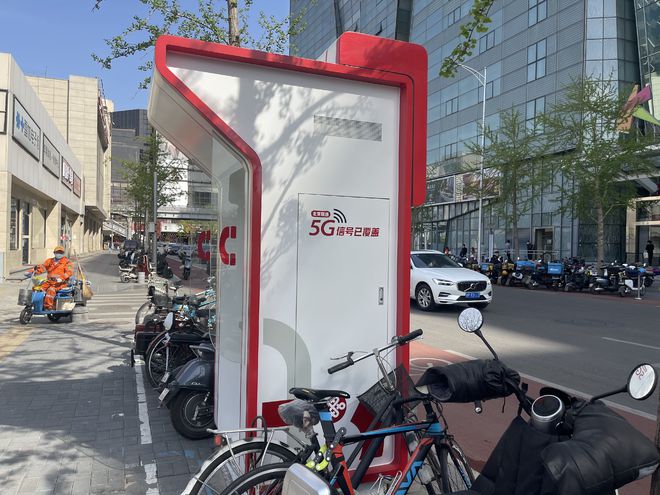 升级版公用电话亭的一侧面板上写着“5G信号已覆盖”字样。新京报记者 吴婷婷 摄