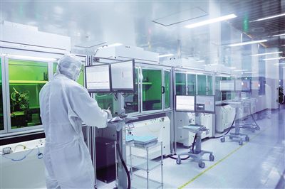 中关村丰台园高科技企业凯普林光电实验室内,工程师正在进行自动化光路耦合。吴上子 摄