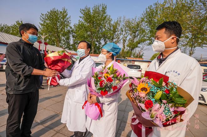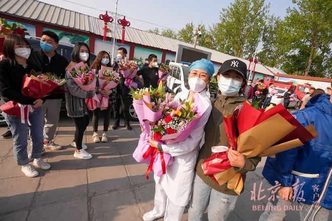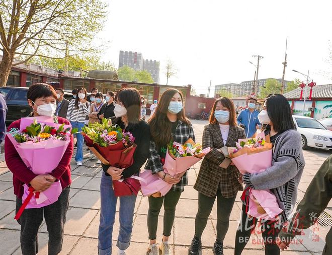 历经14天的管控,上午7时,随着南法信镇镇长王雪宣布:“焦各庄村正式解封”,村子四周的围挡被陆续拆除,一束束鲜花送给驻村的工作人员。同样的场景也在华英园社区上演。为感谢工作人员的辛苦付出和暖心服务,不少居民给村委会和居委会送来了锦旗。