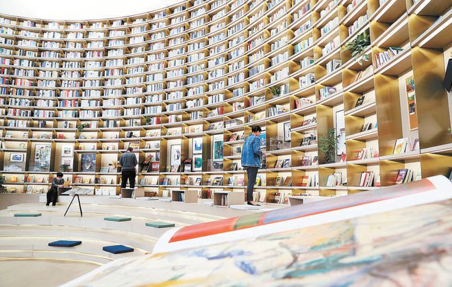 “世界读书日”到来之际,不少市民走进怀柔区北京建工“璟玥林汐美学艺术馆”书林,在安静宽敞的阅读空间享受读书的快乐。 本报特约摄影 卜向东