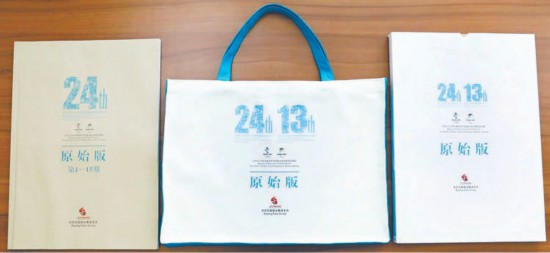 图为冬奥会刊原始版合订本全家福,包括三册合订本(左一)、合订本封套(右一),为方便读者领取,出版方还专门定制了专属环保袋(中)。