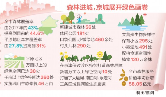 目前,本市森林覆盖率达44.6%,平原地区森林覆盖率达31%。“世界级大城市的理想森林覆盖率约为30%。”国家林业和草原局城市森林研究中心首席专家王成说,“北京已经在短时间内补齐了生态资源总量短板,这在全世界都是史无前例的。”