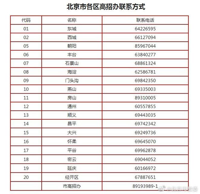 具体志愿填报时间安排和北京市各区高招办联系方式如下: