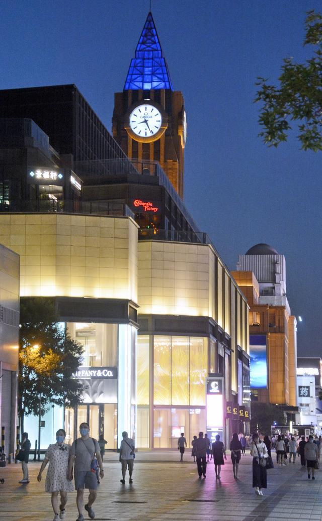 市民夜游王府井商业街(7月6日摄)。 新华社记者李欣摄