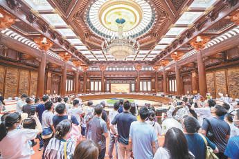 积极挖掘旅游消费潜力的,还有雁栖湖地标——外观形似天坛的雁栖湖国际会展中心。现在,不少游客冲着一股烟火气来到这里,打卡一处新开的“雁栖16号”大排档。