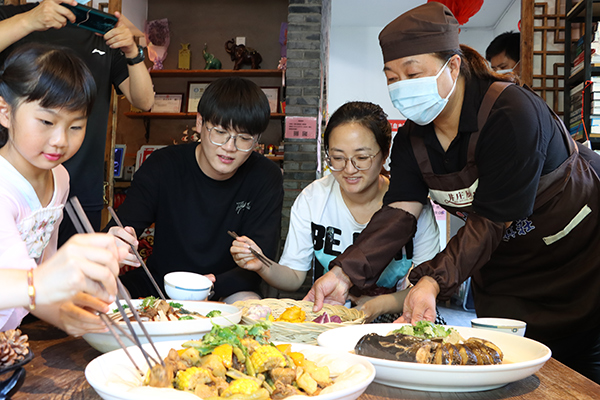游客品尝井庄美食。(延庆区井庄镇供图)