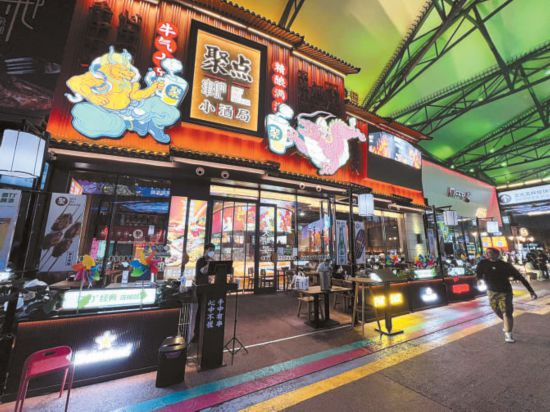 深夜食街则是华熙LIVE·五棵松的人气聚集地。夜晚11点30分,这里仍有近10家餐厅在营业,室内室外上座率超过了五成。“我们晚上营业到凌晨1点30分。”聚点串吧五棵松店经理告诉记者,自6月恢复堂食以来,夜间消费持续升温,最近店里的营收已经超过去年同期。