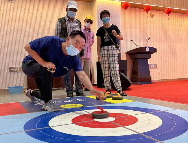 在旱地冰壶场地,参赛的居民基本都有旱地冰壶运动的基础,他们站在赛道前,姿势规范、技巧娴熟。“我们冬奥社区经常组织各种冰雪活动,旱地冰壶、旱地滑冰、滑雪体验……这些运动我们不仅有所了解,还跟街道请来的专业老师学过呢。”居民笑着说道。