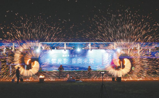 昨天,北京怀柔杨宋镇鹿世界主题园内,“逐梦光影 童向未来”北京国际电影节嘉年华打铁花活动激情开打,飞溅的铁花在夜空中美丽绽放,吸引了众多市民前来观看拍照。本报特约摄影 卜向东