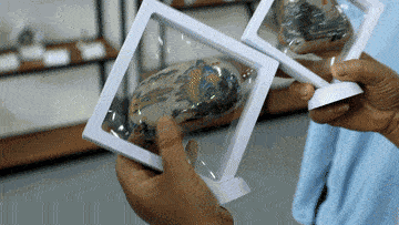 她手握石头,感受它们的形状