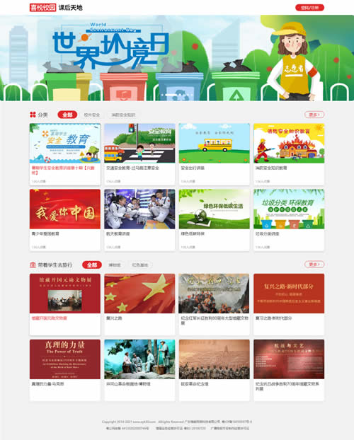 喜悦校园线上解决模式操作简单快捷,并且拥有健全的产品体系,涵盖海量素质课后资源,全部符合教育部提出的中国学生发展的6大核心素养要求。为学生量身打造优质内容,平台设置了“校园影院”、“科技前沿”、“艺术欣赏”、“自然科学”、“综合实践”、“兴趣与专长”、“体育与健康”等栏目。汇集了教育部推荐的优质学生电影、央视学生精品资源数万部,此外还邀请国内知名科学家、教育家、艺术家编写创作相关作品供老师和学生选择。此外,平台精心设计的“VR带着学生去旅行”栏目,精选了井冈山革命博物馆VR、沈阳“九一八”历史博物馆VR、西柏坡中共中央旧址VR等红色教育基地;长城VR、故宫VR、桂林山水VR、秦始王帝陵博物馆VR等旅行胜地供老师带着学生身临其境般地学习和旅行。