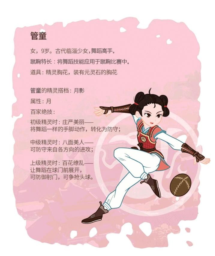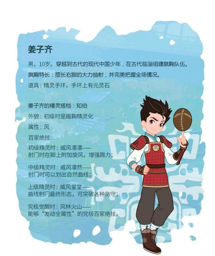 除了故事情节精彩,引人入胜,片中也设计了大量的动画角色,现代中国少年姜子齐、蹴鞠精灵知伯、古代临淄少女管童......每个角色都极具特色,血肉丰满,他们积极进取、向善向上的价值观也是孩子们学习是榜样。