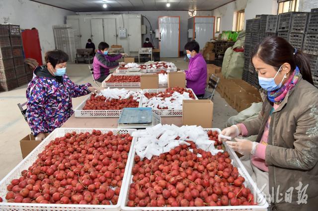 2021年10月19日,在河北省石家庄市晋州西贾庄村山楂种植基地,当地果农分拣包装山楂。