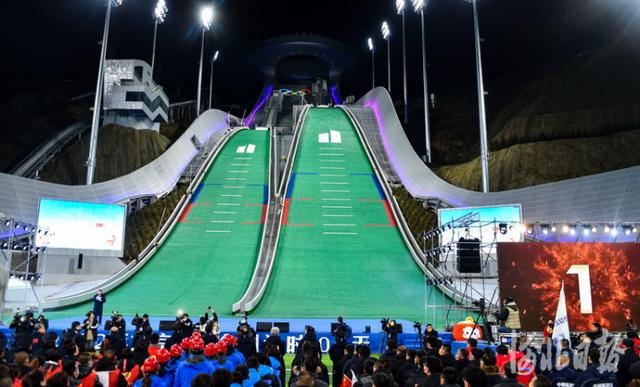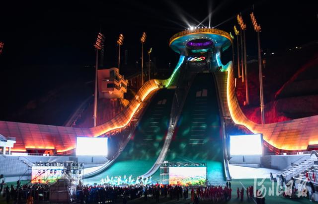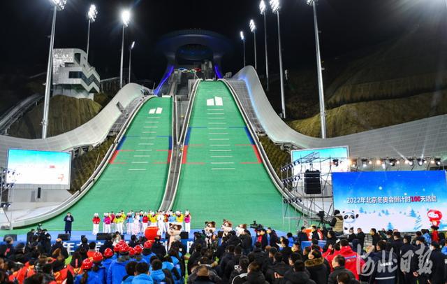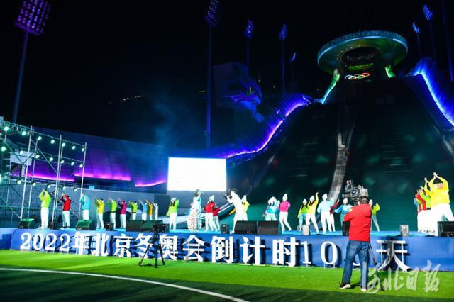 2021年10月26日,在位于张家口市崇礼区的国家跳台滑雪中心——“雪如意”举行了2022年北京冬奥会倒计时100天活动,张家口群众用歌舞庆祝冬奥会倒计时100天的到来。 河北日报记者耿辉摄影报道